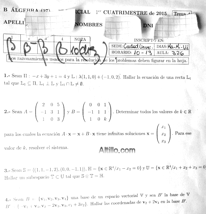 1º Parcial E  |  Algebra (2015)  |  CBC  |  UBA (Sede Ciudad Universitaria)