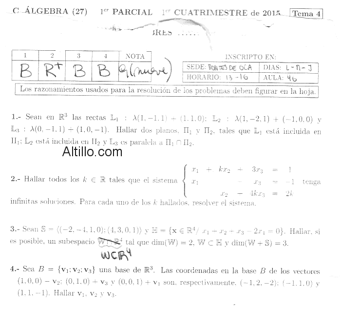 1º Parcial H  |  Algebra (2015)  |  CBC  |  UBA (Sede Montes de Oca)