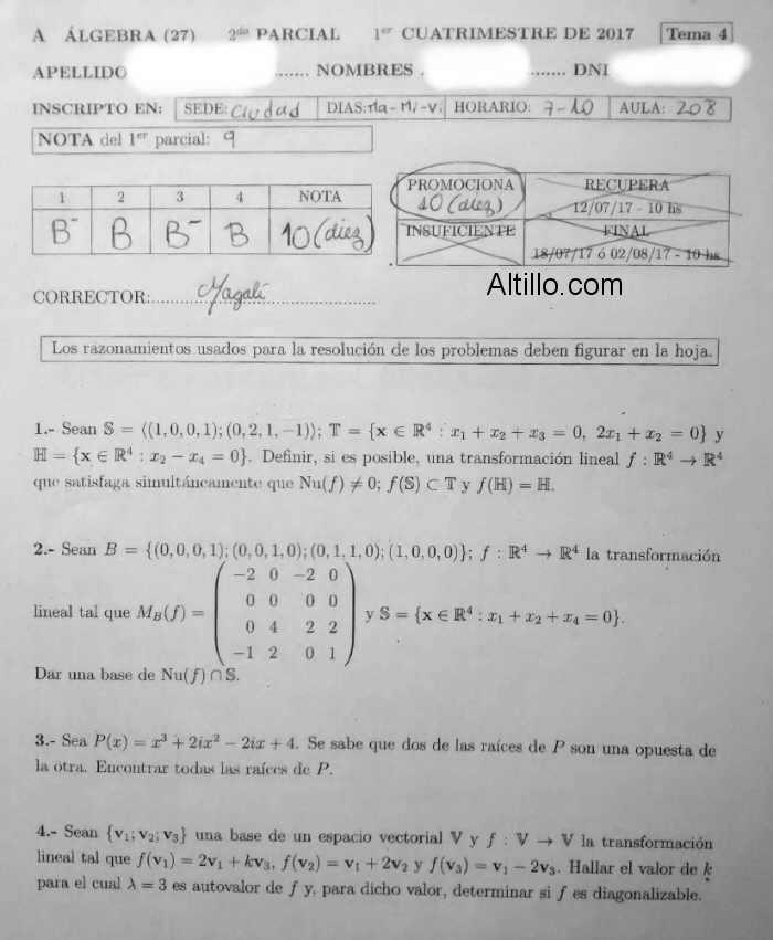 2º Parcial F  |  Algebra (2017)  |  CBC  |  UBA