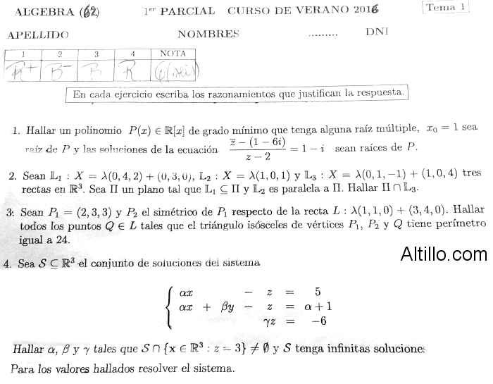 1º Parcial A  |  Algebra (2016)  |  CBC  |  UBA
