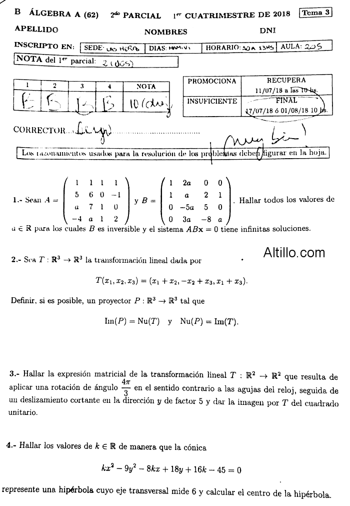 2º Parcial D  |  Algebra (2018)  |  CBC  |  UBA