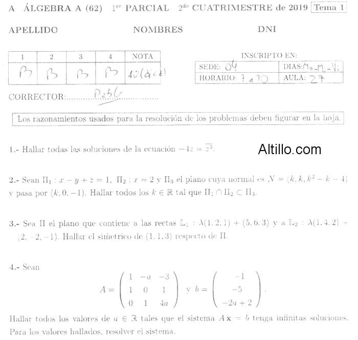 1º Parcial H  |  Algebra (2019)  |  CBC  |  UBA