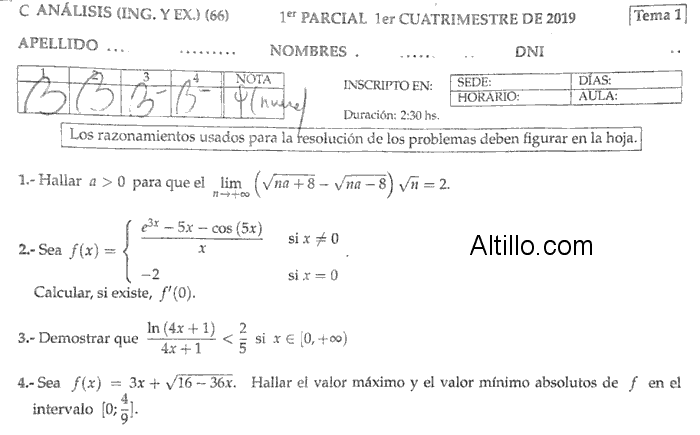 1º Parcial P  |  Análisis Matemático (2019)  |  CBC  |  UBA