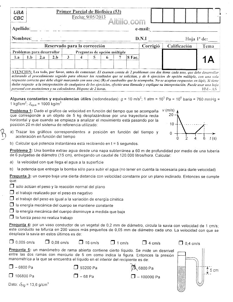 Altillo.com > Exámenes > UBA - CBC > Biofísica