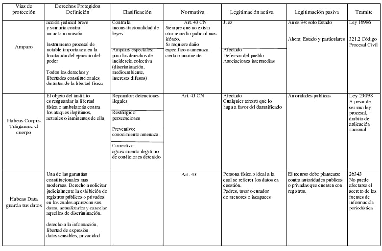 Cuadro sobre Amparo, Habeas Corpus y Habeas Data