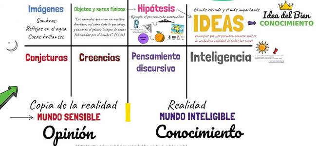 Las divisiones más grandes representan los Mundos Sensible e Inteligible. Niveles de realidad y conocimiento: