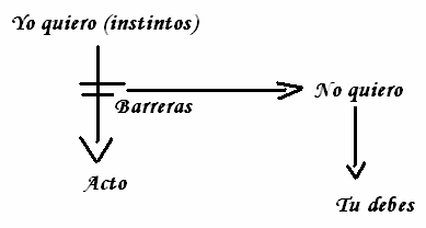 La crueldad, la enemistad, la agresión, todo se vuelve en contra del poseedor de tales instintos. Ese es la procedencia de la mala conciencia. Este hombre, falto de enemigos y resistencias exteriores, se desgarraba, se maltrataba impasiblemente a si mismo, este animal al que se quiere domesticar y se golpea contra los barrotes de su jaula, este loco, este añorante y desesperado fue el inventor de la mala conciencia. LA MALA CONCIENCIA ES PRODUCTO DE LA JAULA SOCIAL (inhibición de instintos).