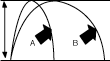 3) Dos proyectiles A y B se disparan simult�neamente desde la superficie de la Luna. Sus trayectorias se muestran en la figura. Se puede asegurar que ambos: