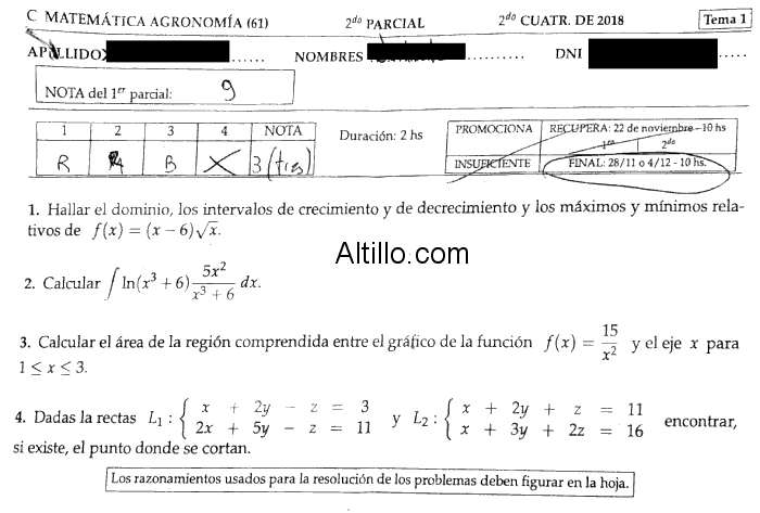2º Parcial C  |  Matemática (2018)  |  CBC  |  UBA