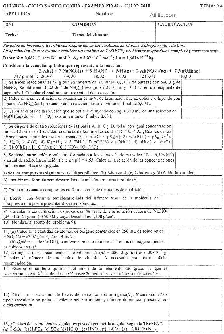 Altillo.com > Exámenes > UBA - CBC > Química