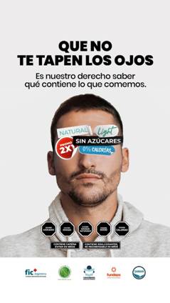 II. Analice en el siguiente aviso de una campaña por la ley de etiquetado frontal de los alimentos, los cinco niveles de codificación del mensaje visual que desarrolla Eco. Incluya en el nivel correspondiente a qué figura(s) retórica(s) (Eco y/o Iuvaro y Podestá) se apela en la imagen.