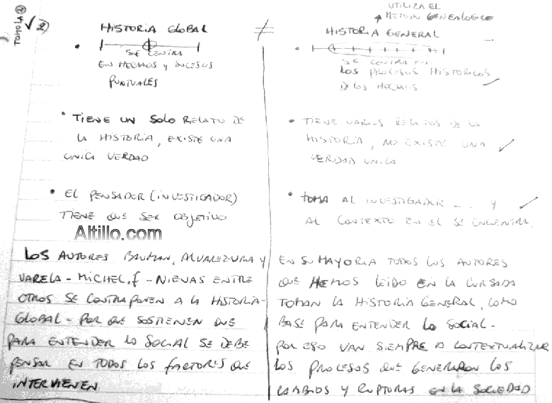 2) Establezca las diferencias entre la historia global y la historia general.