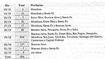➔ El 12 de diciembre comenzó un cacerolazo en Mar del Plata (la llamada ciudad del desempleo) y a las 20.30 un apagón por 10 minutos. Situaciones similares sucedieron en Rosario, Capital Federal, entre otros.