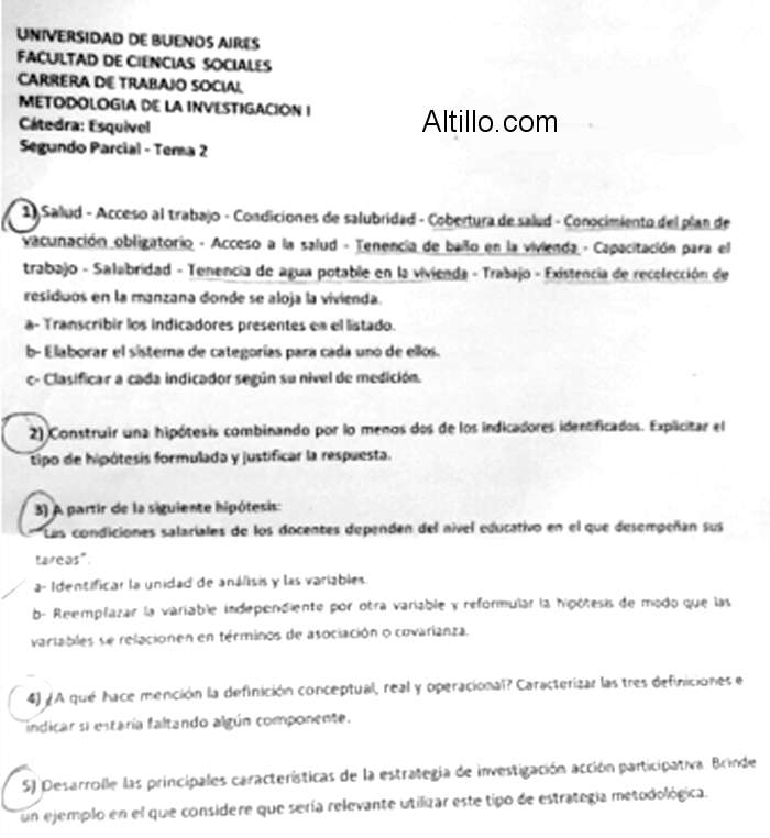Altillo.com > Exámenes > UBA - Cs. Sociales - Trabajo Social > Metodología de la Investigación I