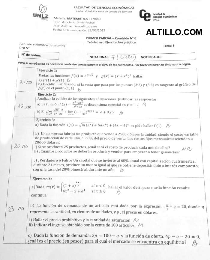 Altillo.com > Exámenes > Univ. de Lomas de Zamora > Matemática I