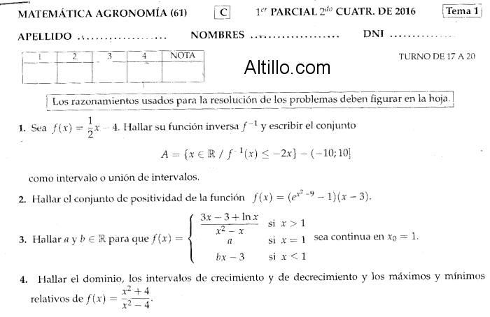 1º Parcial C  |  Matemática (2016)  |  CBC  |  UBA
