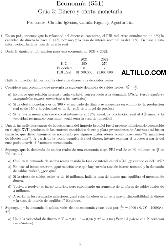 Guía III: Dinero y Oferta Monetaria  |  Economía (Cátedra: Iglesias - 2024)  |  Cs. Sociales  |  UBA