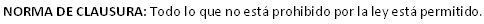 Para Kelsen el Derecho es un conjunto finito de prohibiciones mas una Norma de Clausura (Todo lo que la ley no prohíbe está permitido).