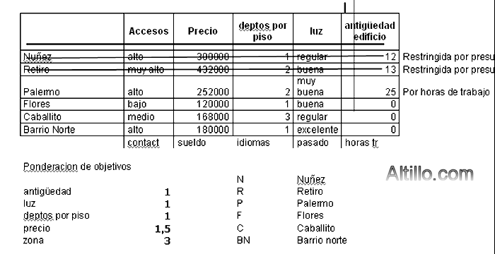 Luego de un fin de semana agitado de búsqueda de departamentos, MARTIN R se encuentra dispuesto a analizar la situación. Cada uno de los que visitó posee distintos atributos y en eso reside la complejidad de su decisión.