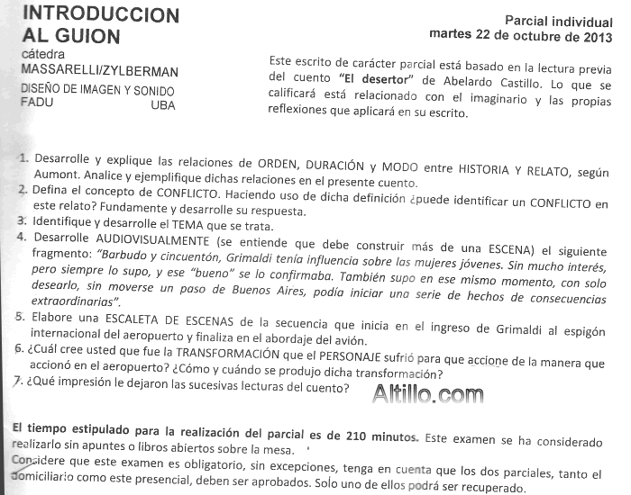 Altillo.com > Exámenes > UBA - FADU - Diseño de Imágen y Sonido > Introducción al Guión