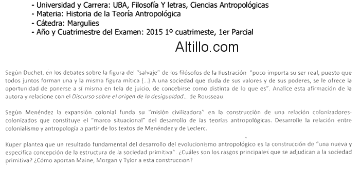 Altillo.com > Exámenes > UBA - Filosofía y Letras - Antropología > Historia de la Teoría Antropológica
