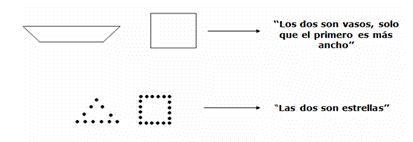 Las figuras inacabadas eran percibidas como “parecidas a un círculo, parecidas a un cuadrado”. En estos grupos aparecían escasas denominaciones concretas (ej: es una regla, una moneda, etc.)