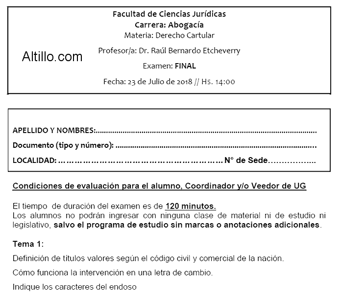 Altillo.com > Exámenes > Universidad Católica de Salta > Derecho Cartular