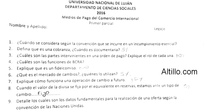 Altillo.com > Exámenes > UNLU > Medios de Pago del Comercio Internacional