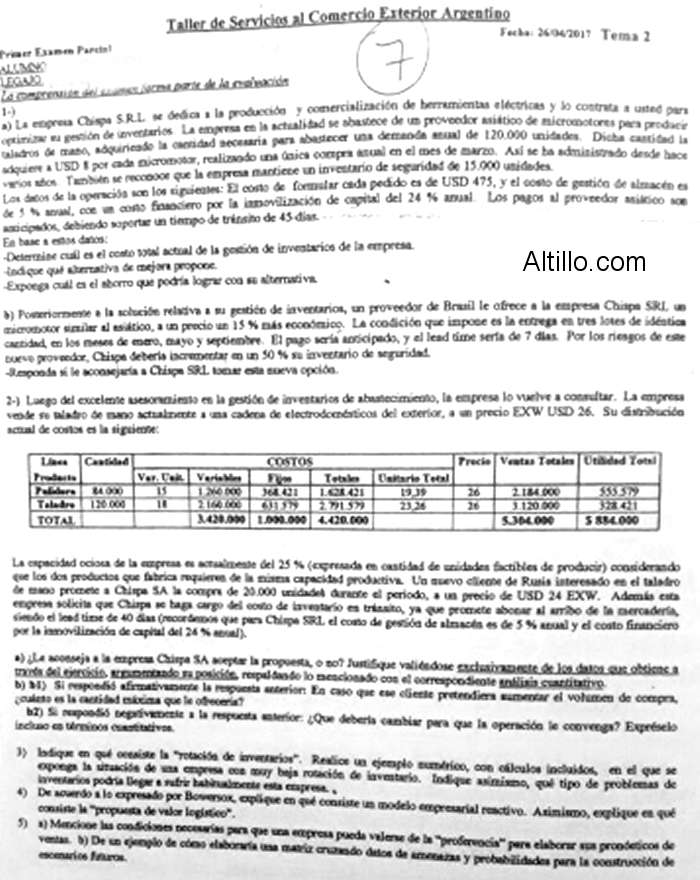 Altillo.com > Exámenes > UNLU > Taller de Régimen Operativo de Exportación
