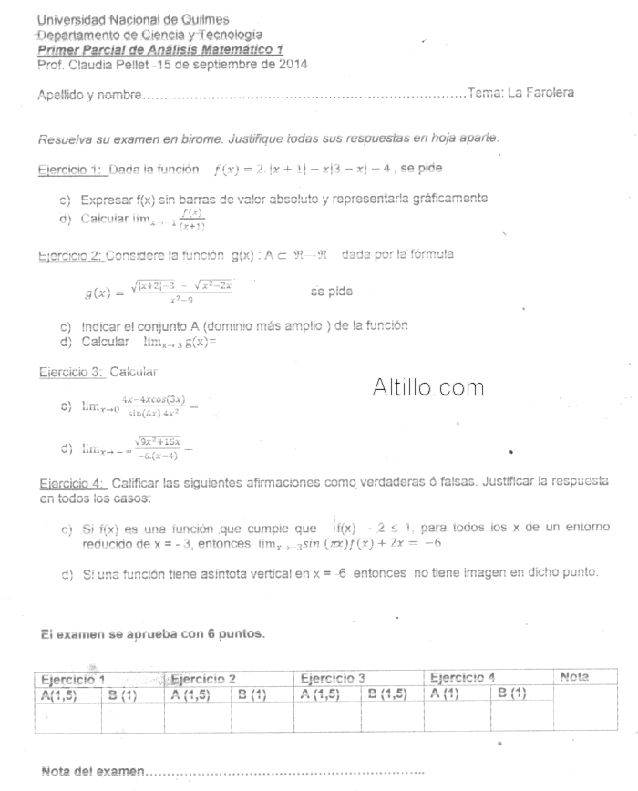 Altillo.com > Exámenes > Universidad de Quilmes > Análisis Matemático