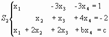 2) Hallar todos los valores de a, b y c para los cuales (1,1,1,-1) es la única solución común de los sistemas S1 y S2