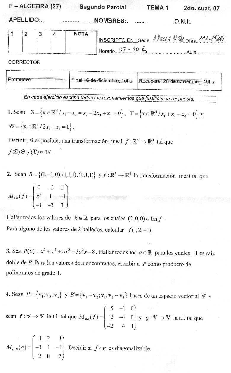 Altillo.com > Exámenes > UBA - CBC > Álgebra