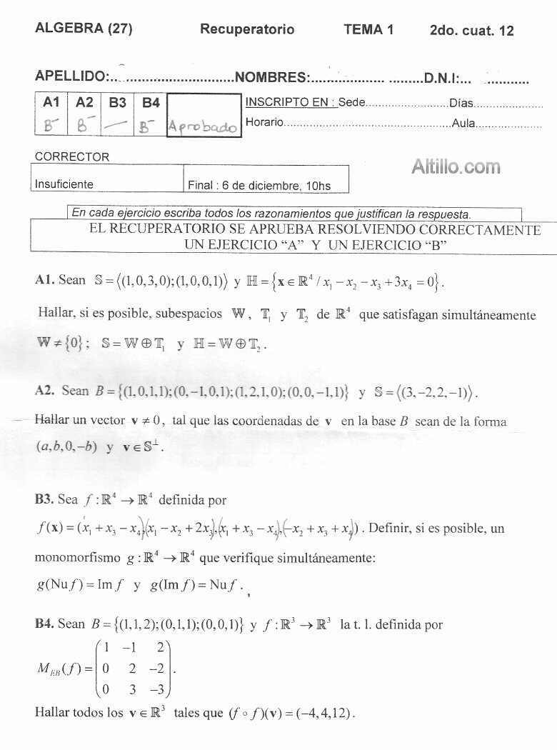 Altillo.com > Exámenes > UBA - CBC > Álgebra
