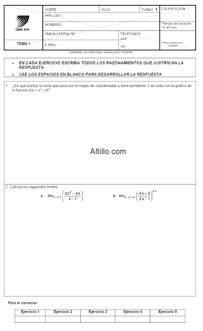 1º Parcial B  |  Matemática (2015)  |  UBA XXI
