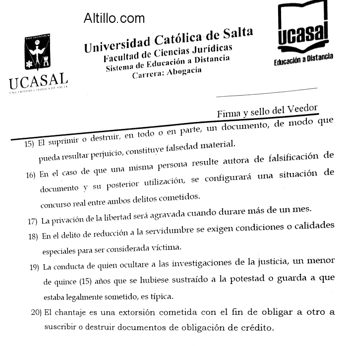 Altillo.com > Exámenes > Universidad Católica de Salta > Derecho Penal