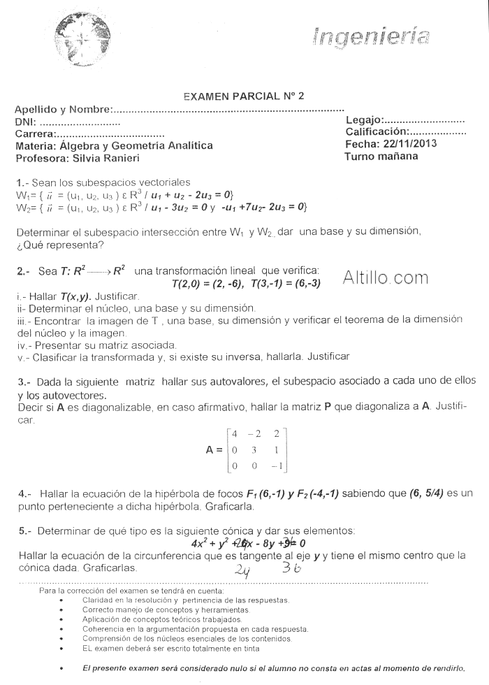 2º Parcial B  |  Algebra y Geometría Analítica (2013)  |  UDEMM
